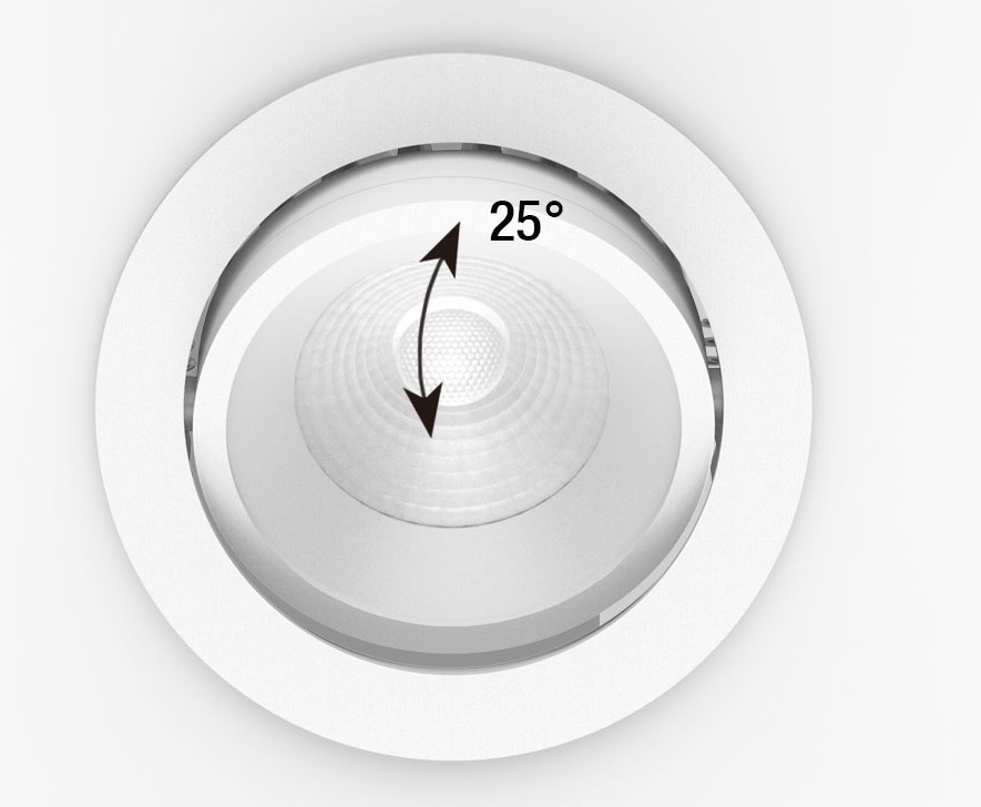 Poiketen tyypillisestä kohdevalaisimesta, iiris-valaisimen upotussyvyys on vain 43mm, joten se voidaan asentaa normaalii koolauksen.Huomioi asennettaessa 25mm ilmatila valaisimen ja liitäntälaitteen ympäreillä.