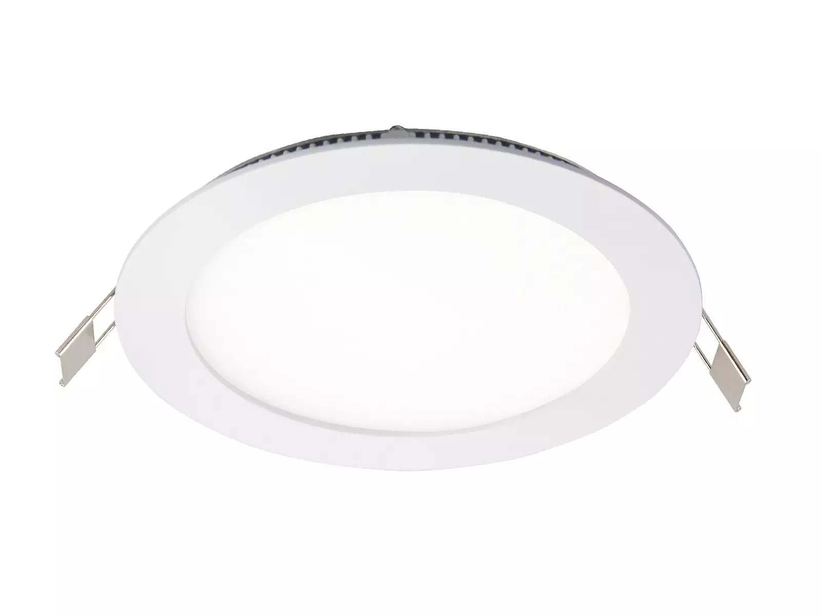 Matala ja pyöreä paneelivalaisin, jossa luonnollinen ja häikäisemätön valo. Valaisimen paksuus on vain 8 mm.