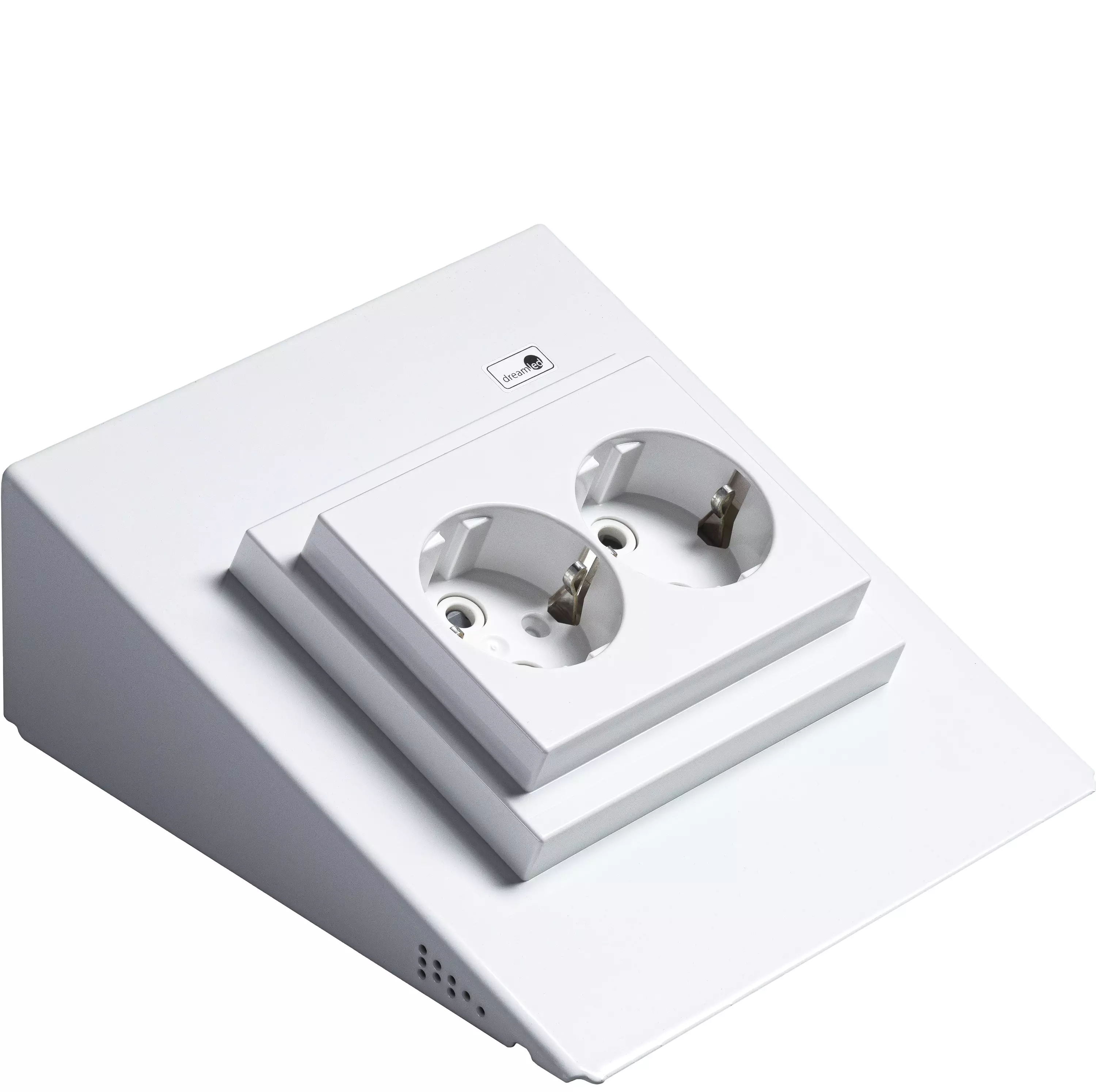 Alkuperäinen Dreamledin monitoimipistorasia on Suomessa valmistettava Avainlipputuote ja pitää sisällään led-valaistuksen vaatiman liitäntälaitteen ja integroidun tai ulkoisen valokatkaisijan riippuen mallista. Napsautat valaisimen pikaliittimen monitoimipistorasian pikaliittimeen ja toteutus on valmis.